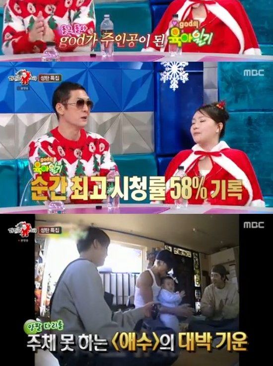이어 "원래는 H.O.T에게 먼저 섭외가 갔는데 신비주의 때문에 거절을 했고, 이후에 젝스키스, 신화한테도 섭외가 갔었다더라. 그러다 god한테까지 오게됐다. 우리는 땡큐였다. '육아일기'가 당시에 최고 시청률 58%를 기록했었다"고 회상했다.