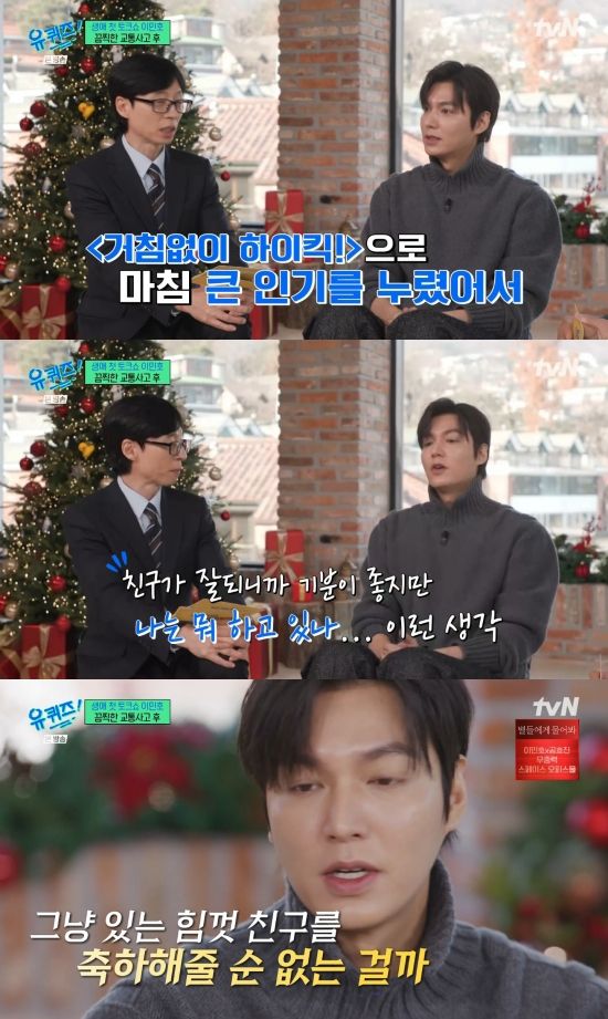 유재석은 "나름 이 업계에 발을 들이고 열심히 활동을 해보려는 시기에 사고를 당하니까"라며 탄식했고, 이민호는 "딱 스무 살 때였는데 막 성인이 돼서 여러 가지 꿈을 꾸고 뭔가 펼치고 싶은 욕망이 있던 나이다. 모든 것들이 의도치 않게 스톱이 되면서 할 수 있는 게 생각밖에 없었다. 부정도 했다가 분노도 했다가 우울하기도 했다가 받아들이기도 했다가 그랬던 거 같다"라며 회상했다.