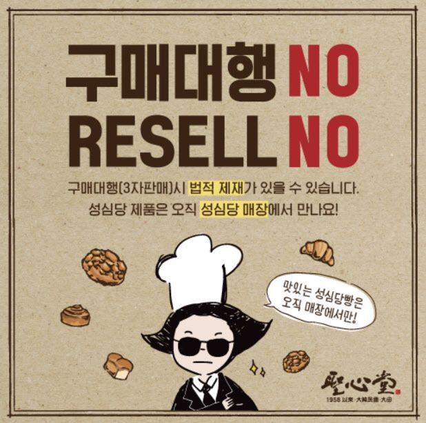 그러나 성심당은 이러한 되팔기 행위를 금지하고 있다. 성심당은 최근 홈페이지를 통해 “구매대행(3자 판매)시 법적 제재가 있을 수 있다”며 “성심당 제품은 오직 성심당에서 만나자”고 경고했다.
