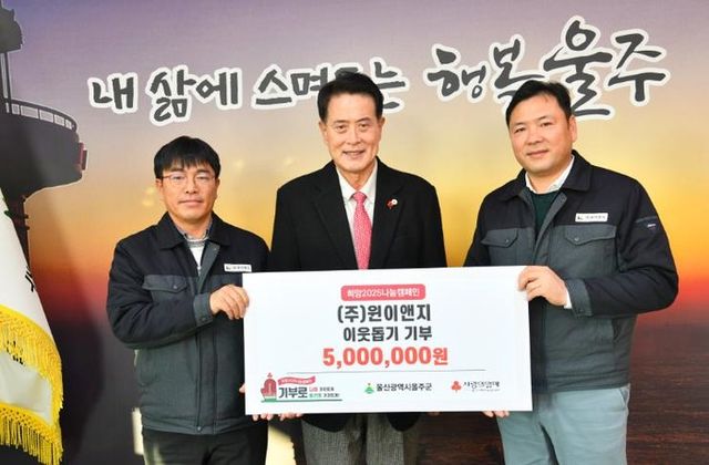 [파이낸셜경제=김예빈 기자] ㈜윈이앤지가 26일 울주군청 소회의실에서 이순걸 군수, 유인 대표이사, 윤석구 대표, 울산사회복지공동모금회 차정하 회원홍보팀장 등이 참석한 가운데 성금 500만원을 전달했다.