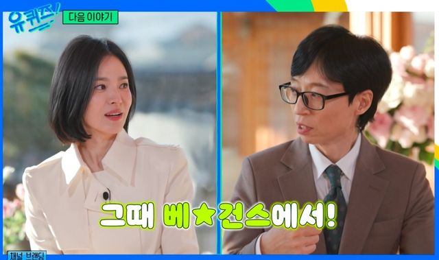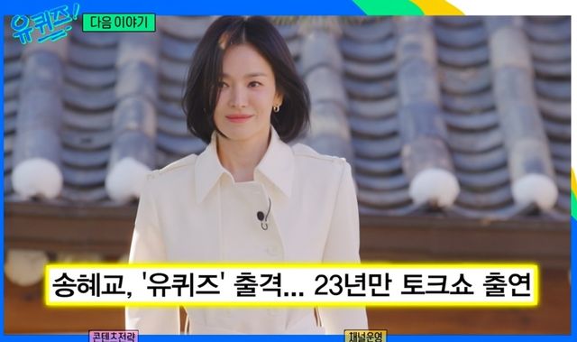 지난 25일 방송된 tvN 예능 프로그램 '유 퀴즈 온 더 블럭'의 방송 말미 다음 주 송혜교의 출연이 예고됐다. 유재석은 "올겨울 바람이 부니 그녀가 왔다. 배우 송혜교다. 23년 만에"라는 소개 문구로 기대감을 더했다.