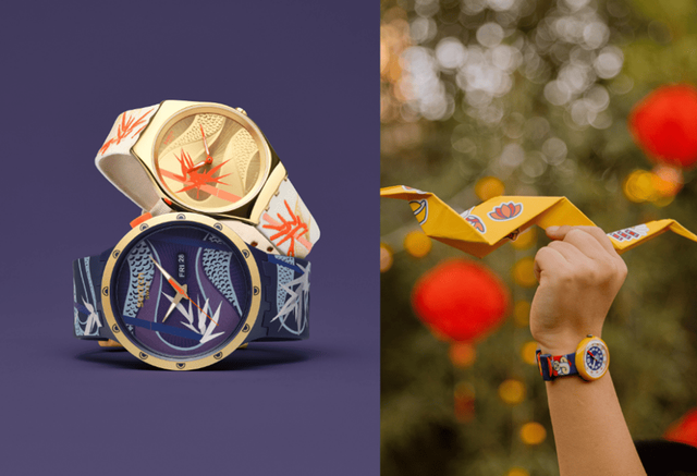 뱀띠 해 컬렉션은 오버사이즈 다이얼에 다크 블루 컬러를 적용한 ‘블루 앤드 골든 라이드 댄서(BLUE AND GOLDEN LITHE DANCER)’와 골드&레드 컬러가 포인트를 더하는 얇고 가벼운 스킨 라인의 ‘골든 레드 뱀부(GOLDEN RED BAMBOO)’ 2종으로 구성됐다.