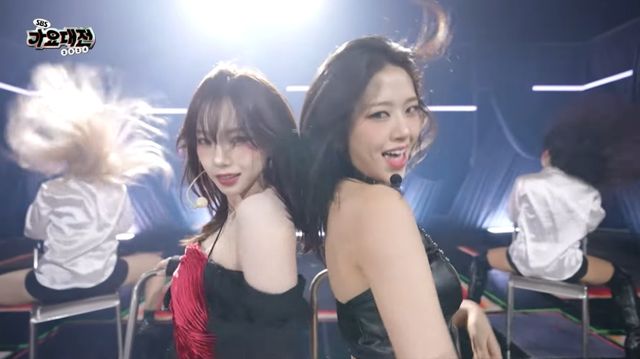 카리나와 안유진은 지난 25일 방송된 '2024 SBS 가요대전'에서 'Killer'로 스페셜 무대를 선보였다. 걸그룹 대표 강아지상 안유진과 고양이상 카리나는 블랙의 룩을 입고 무대 위에서 의자 춤 등 다양한 안무를 완벽하게 소화하며 보는 이들의 시선을 압도했다.