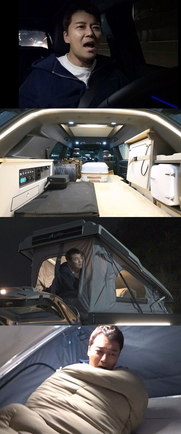 전현무는 새 캠핑카를 타고 4시간 30분을 달려 도착한 곳에서 팝업 텐트를 설치하고 차박을 시도한다. 하지만 갑작스럽게 몰아친 바람과 우박으로 인해 텐트가 흔들리고 공포에 질린 전현무의 모습이 포착되어 웃음을 자아낸다.