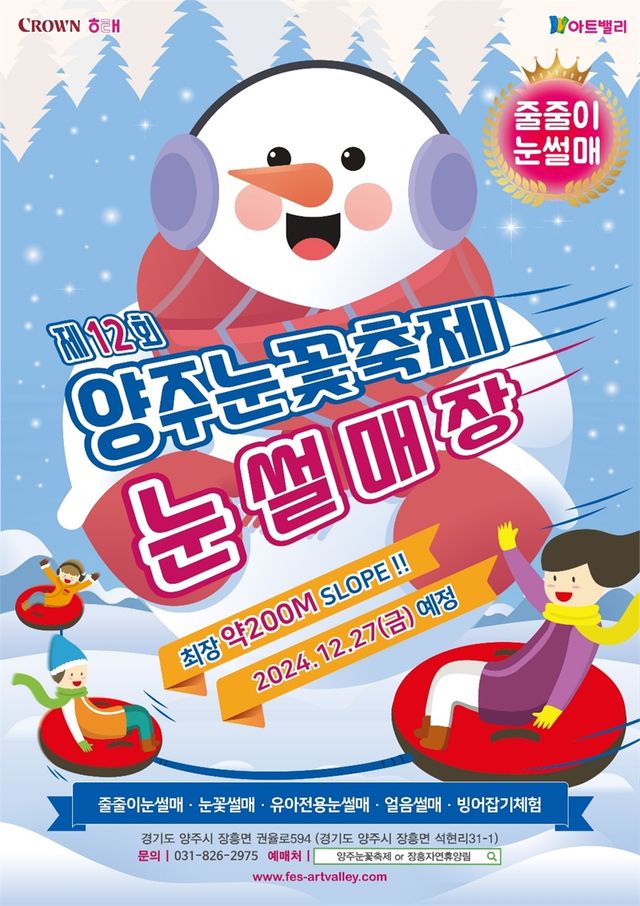 올해로 12회를 맞은 ‘양주눈꽃축제’는 신나는 눈썰매 프로그램과 다양한 조각 작품 전시 등으로 구성돼 방학을 맞은 아이들에게 인기만점이다.
