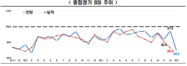 이는 전월(97.3) 대비 12.7포인트 급락한 수치다. 코로나19 팬데믹 영향이 반영된 2020년 4월(-25.1포인트) 이후 4년 9개월 만에 가장 큰 낙폭이다.