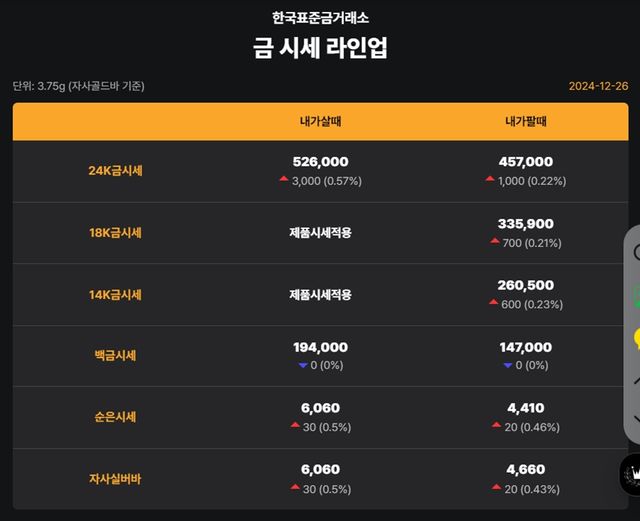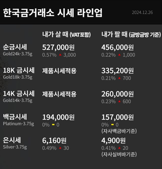순금(24K) : 매입가 52만 7000원 / 매도가 45만 6000원
