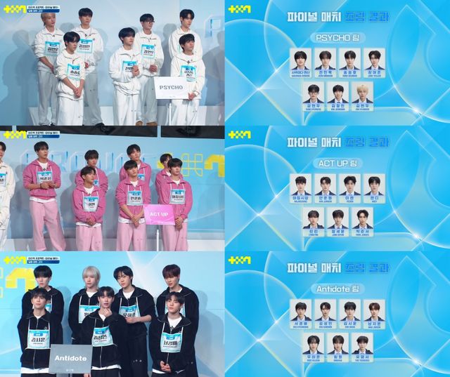 특히 월드 어셈블러들의 투표에 따라 ‘PSYCHO(사이코)’에는 사쿠라다 켄신, 전민욱, 송승호, 장여준, 강현우, 김정민, 김현우가, ‘ACT UP(액트 업)’에는 마징시앙, 안준원, 이첸, 앤디, 린린, 정세윤, 박준서가, ‘Antidote(안티도트)’에는 서경배, 김성민, 김시훈, 남지운, 우하준, 빙화, 유영서가 조립된 가운데 매회 눈부신 성장과 발전을 이뤄냈던 연습생들이 어떤 폭발적인 무대를 선보일지 귀추가 주목된다.