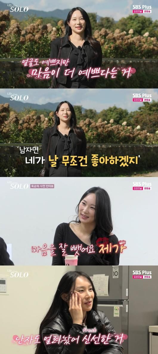 특히 옥순은 자신감 넘치는 모습으로 주목받았다. 결혼을 진지하게 생각하며 프로그램에 참여했다고 밝힌 옥순은 “솔직하고 얼굴도 예쁘지만 마음이 더 예쁘다. 남자면 무조건 날 좋아하겠지라는 생각으로 산다”며 당당하게 말했다.