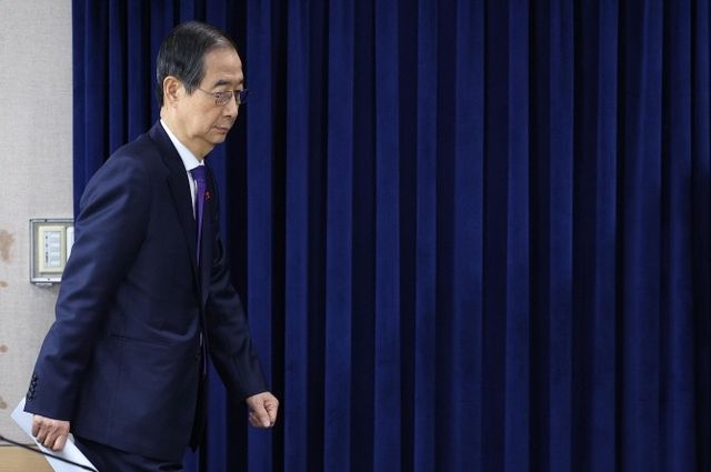 한덕수 대통령 권한대행 국무총리가 26일 대국민 담화 발표를 위해 서울 종로구 정부서울청사 기자회견장에 들어서고 있다. ⓒ 연합뉴스