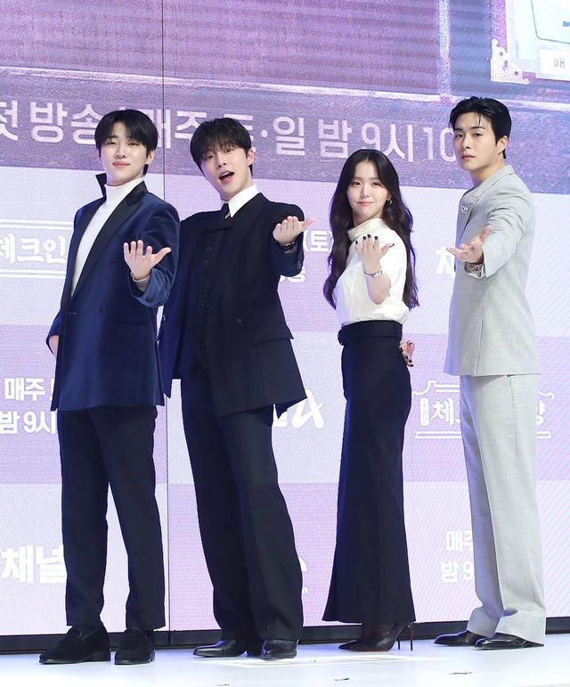 배우 박재찬(왼쪽부터)과 배인혁, 김지은, 정건주가 지난 17일 서울 강남구 엘리에나 호텔에서 열린 채널A 새 토일드라마 '체크인 한양' 제작발표회에서 포즈를 취하고 있다. '체크인 한양'은 돈만 내면 왕도 될 수 있는 조선 최대 여각 용천루, 그곳에 입사한 조선 꽃청춘들의 파란만장한 성장을 담은 청춘 로맨스 사극이다 / 뉴스1