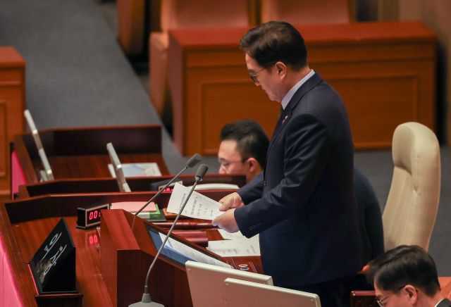 국회는 26일 오후 본회의를 열고 민주당 박성준 의원 등 170인이 발의한 '국무총리 한덕수 탄핵소추안'을 의사국장 보고사항으로 보고했다. 본회의에 보고된 발의 법안은 발의 시점을 기준으로 24시간 이후부터 72시간 이내까지 상정여부가 결정된다. 당장 27일 오후부터 한 총리 탄핵안의 본회의 상정 및 표결이 가능해진 것이다.