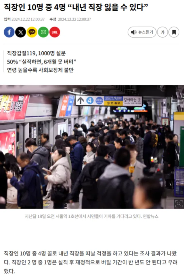 직장인 10명 중 4명 “내년 직장 잃을 수 있다”