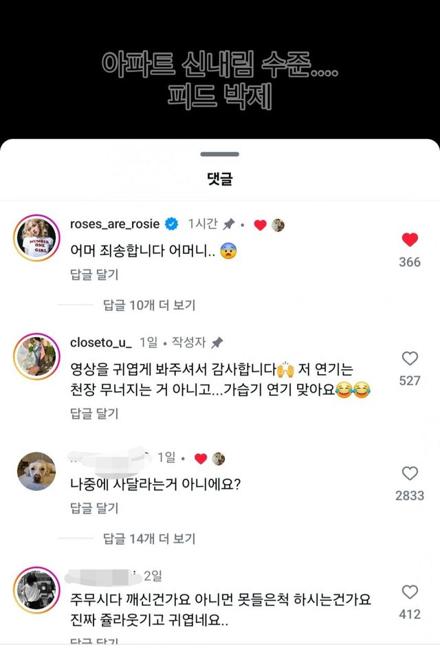 로제가 직접 댓글 달며 사과함 ㅋㅋㅋㅋ