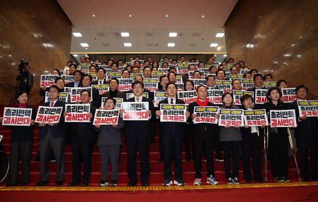 국민의힘 비상대책위원장에 지명된 권영세 의원은 한 권한대행 탄핵이 경제에 미칠 여파를 우려했다. 그는 규탄대회 후 취재진과 만나 “한덕수 권한대행 체제가 자리를 잡으며 환율이 내려가는 경향이 있었는데 탄핵 얘기가 나오며 1450원, 1460원을 뚫었고 탄핵이 구체화하면 1500원도 넘을 수 있다”고 예상했다.