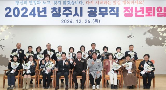 행사에는 퇴직자 17명과 이들의 가족 및 친지, 이범석 청주시장을 비롯한 시 직원 등 100여명이 참석했다.