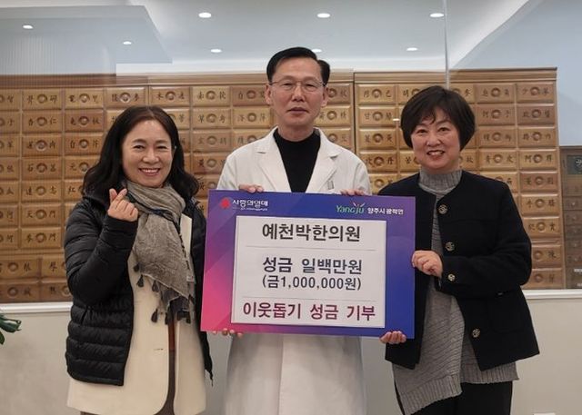 [와이뉴스] 양주시 광적면은 지난 24일 예천박한의원에서 관내 저소득가정을 지원하기 위해 성금 100만원을 기부했다고 밝혔다.