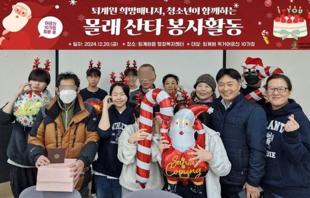 김기수 센터장은 “추운 겨울, 외로운 연말을 홀로 보내는 퇴계원 독거 어르신 가정에 따뜻함을 드리기 위해 청소년, 주민 봉사자가 함께 방문하는 크리스마스 이벤트를 준비했다.”라며, “앞으로도 주민이 주민을 돕는 활동을 지속적으로 전개할 수 있도록 노력하겠다.”라고 전했다.