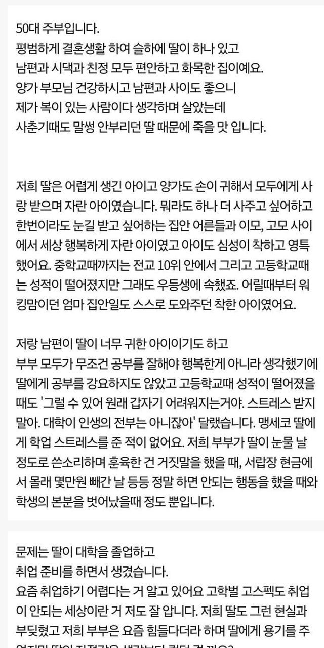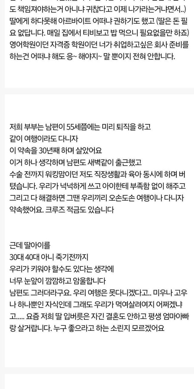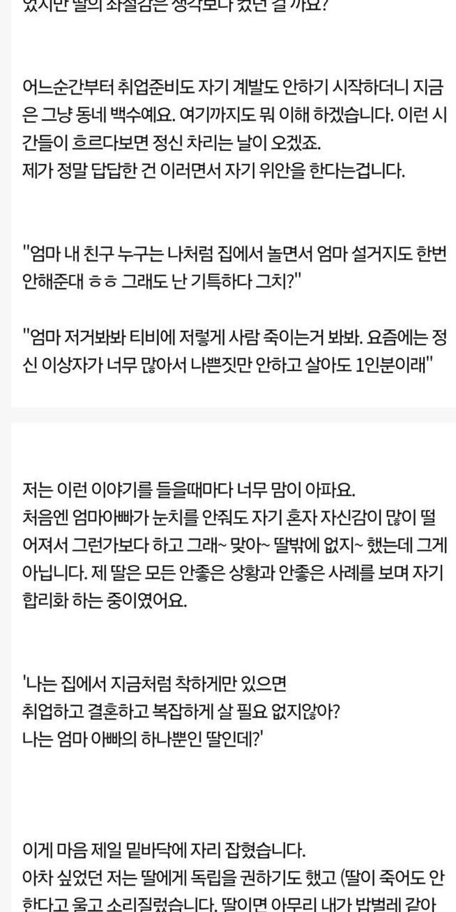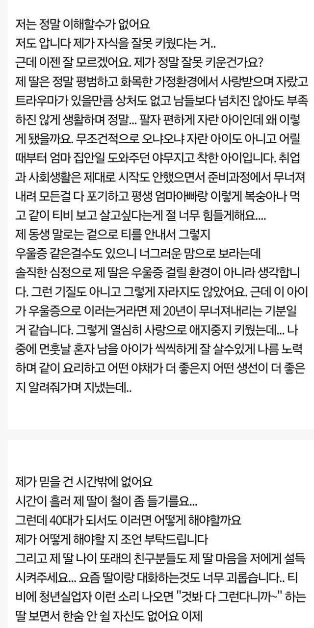 결혼안하는 백수 딸이 걱정이라는 50대 엄마
