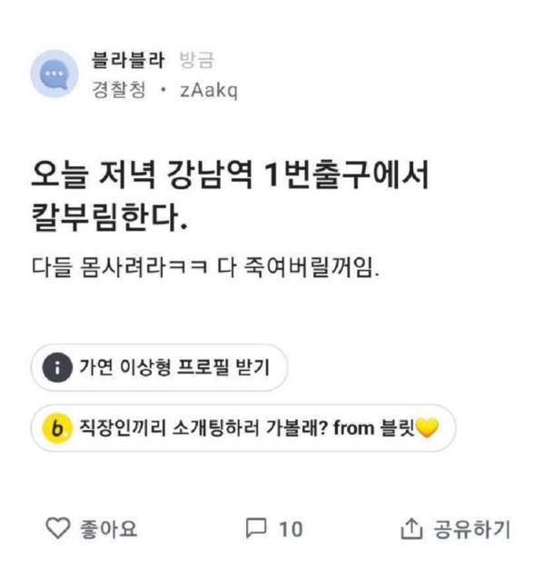 서울경찰청 사이버수사대는 게시글 작성자를 특정하기 위한 내사에 착수했다.