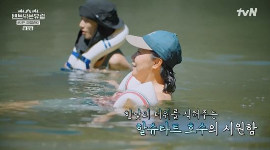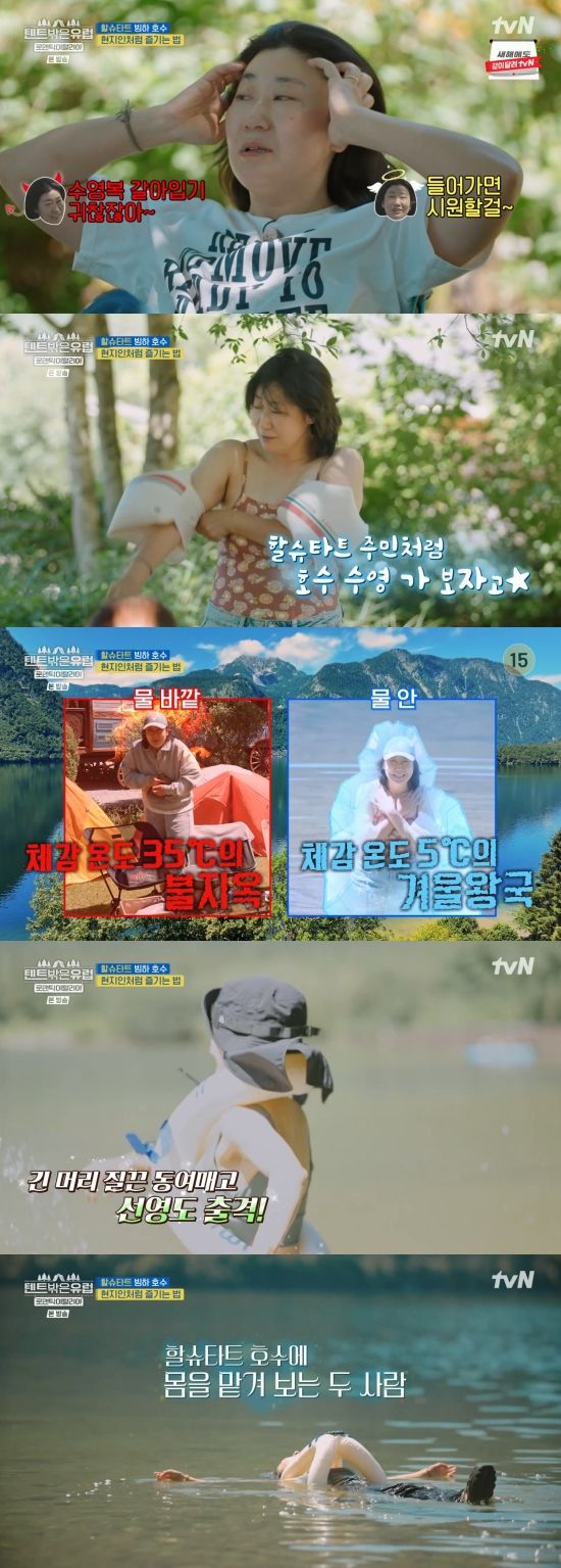 26일 방송된 tvN '텐트 밖은 유럽-로맨틱 이탈리아 편'(이하 '텐트 밖은 유럽')에서는 라미란과 곽선영이 할슈타트 빙하 호수에서 물놀이하는 장면이 전파를 탔다.