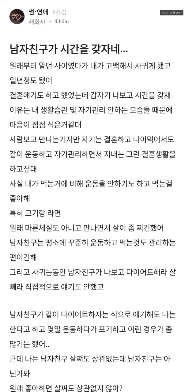 163에 69kg 여자인데 남친이 시간을 갖자고 해서 우울한 뚱뚱녀,,
