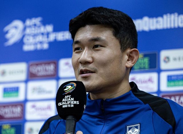 대한민국 축구대표팀 주장 김민재 선수가 지난 10월 경기도 용인시 처인구 용인미르스타디움에서 2026 국제축구연맹(FIFA) 북중미 월드컵 아시아 3차 예선 경기를 앞두고 열린 공식 기자회견에서 각오를 밝히고 있다. / 뉴스1