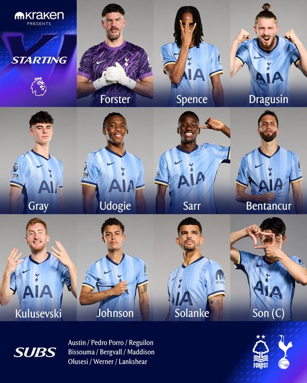 경기 시작을 1시간 15분 앞두고 양 팀 선발 명단이 공개됐다. 4-2-3-1 전형으로 나설 걸로 보인다. 도미닉 솔랑케가 최전방을 책임지고 손흥민, 데얀 쿨루세프스키, 브레넌 존슨이 공격을 지원한다. 로드리고 벤탕쿠르와 파페 마타르 사르가 중원에 위치하고 데스티니 우도기, 아치 그레이, 라두 드라구신, 제드 스펜스가 수비라인을 구축하며 프레이저 포스터가 골키퍼 장갑을 낀다.