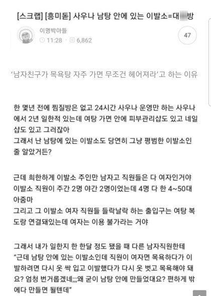 여초에서 생각하는 남탕 안의 이발소