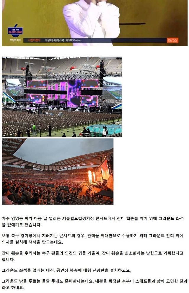 임영웅, ‘잔디밭훼손’ 축구팬들 우려에 상암 공연장 잔디밭 위에 객석 없앤다