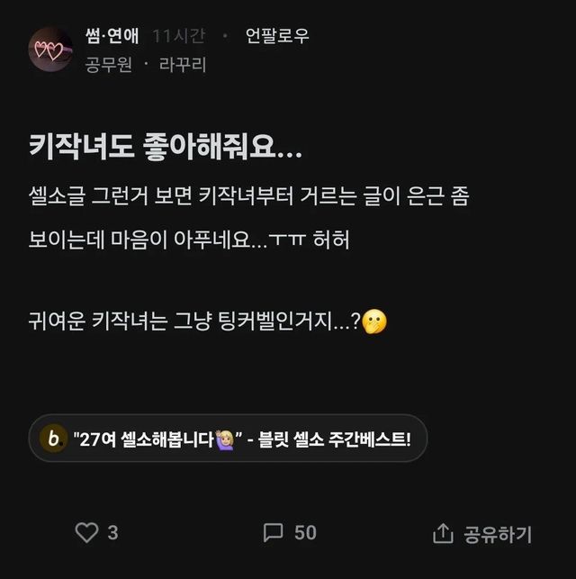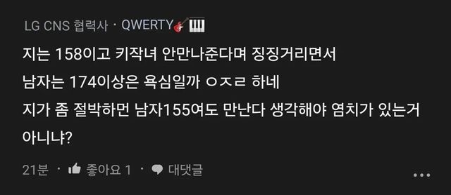 본인 키가 158인데 좀 좋아해 달라는 블라녀