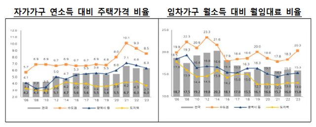 작년 자가 가구의 연소득 대비 주택가격 비율(PIR)은 전국 6.3배로 전년과 동일했다. PIR은 중위 주택 가격, 연간 중위 소득(세후)을 기준으로 한 것으로 월급을 쓰지 않고 모았을 때 집을 마련하기까지 걸리는 시간을 뜻한다.