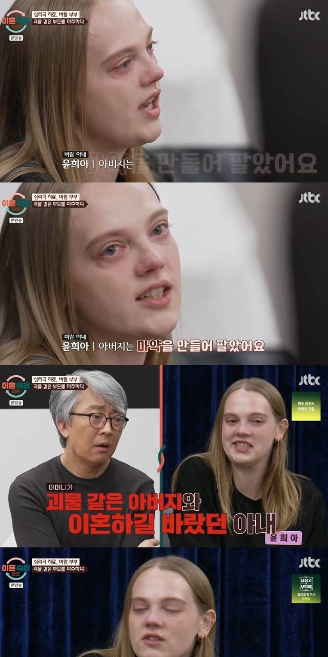이날 바람부부 아내는 자신의 가정사를 묻자 "아빠는 마약 만들어서 팔았다. 맨날 싸워서 우리집 물건 다 던지고 나한테도 학대 많이 했다. 경찰이 거의 맨날 왔다. 그래서 저는 아버지 때문에 저는 고아원 갔다. 2년 동안. 가족이 너무 위험해서"라고 전했다.