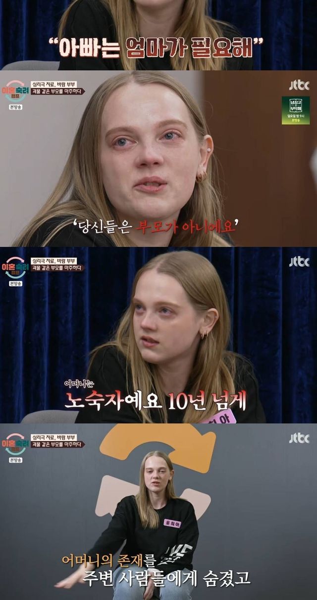 아내는 "어머니는 노숙자다. 10년 넘게. 지금 60대인데 텐트에서 산다. 마약 하고 그러더라. 2년 전에 어머니랑 연락이 끊겼다"고 밝혔다.