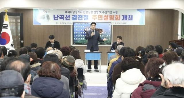 금번 주민설명회는 ‘난곡선 경전철 사업’ 예비타당성조사 진행 상황을 주민들에게 설명하고, 의견을 수렴하고자 개최됐다.
