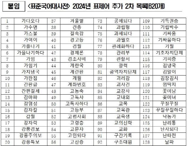 한편 국립국어원은 2022년부터 표제어 추가를 위한 연구 사업을 수행해 ‘표준국어대사전’에 새로 등재할 어휘를 새롭게 발굴, 선정해오고 있다.