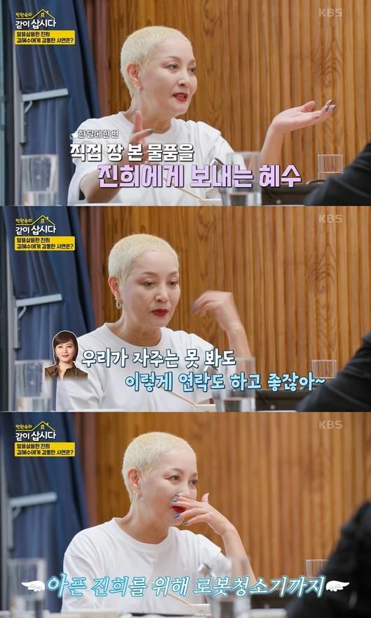 지난 26일 방송된 KBS2 '박원숙의 같이 삽시다'에서 홍진희는 절친인 조혜련과 김혜수의 꾸준한 도움에 감사함을 표했다.