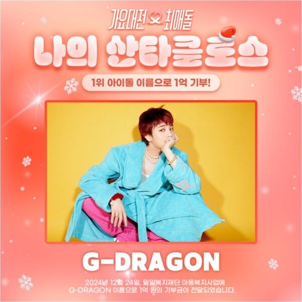 지드래곤은 “최애돌 1위에 선정되어 기쁘다. 팬들의 사랑에 감사하며, 이 기부가 어려운 이웃들에게 작은 도움이 되길 바란다”며 소감을 전했다.