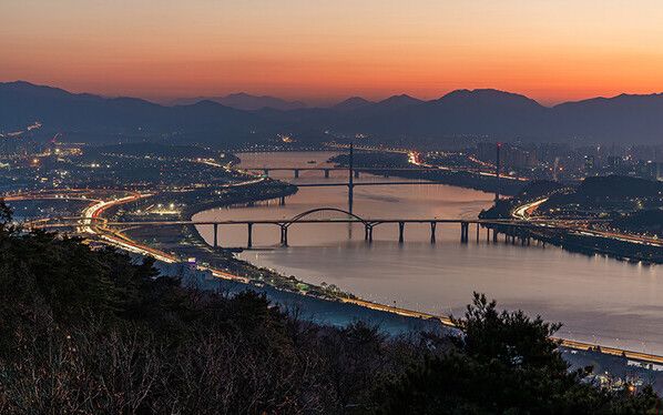 높은 곳에서 떠오르는 해를 보고 싶지만 격한 등산은 싫은 사람에게 아차산을 추천합니다. 광진구와 구리시의 경계에 있는 산으로 경사가 완만해 초보자들도 쉽게 등산이 가능한 곳이기 때문인데요. 만남의 광장에서 20분만 걸으면 능선부에 도착할 수 있죠. 강북과 강남을 이어주는 대교들과 한강을 배경으로 도심을 물들이는 햇살을 감상해 보세요.