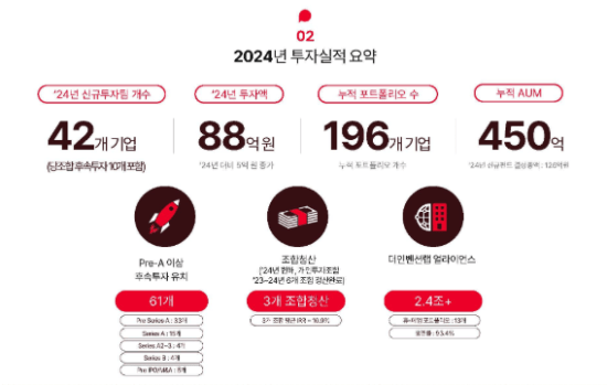 특히 삼천리그룹과 함께 딥테크, 기후테크, 데모테크, K컬처 등 4대 분야 스타트업 스카우팅 프로그램을 진행해 400개 이상의 기업이 참여하는 성과를 거뒀다. 올해는 로보틱스, 생성형 AI, 우주항공, 바이오/신약개발 분야에 집중 투자했다.