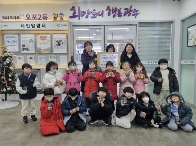 이에 대해 허미정 동장은 “고사리손으로 한푼 한푼 모아온 아이들의 정성 어린 마음에 크게 감사드린다”며 “성금은 오포2동의 어려운 이웃들에게 소중히 사용하도록 하겠다”고 말했다.