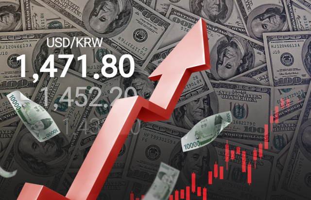 27일 서울외환시장에서 원·달러 환율은 전날보다 0.4원 내린 1468.8원에 출발해 상승 폭을 키우더니 장 초반 1480원을 넘어섰다. 미국발 세계금융위기였던 2009년 3월16일(1488.0원) 이후 15년 9개월 만에 최고치다.