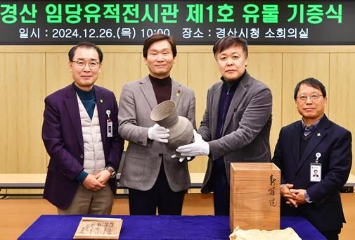 조현일 시장은 “이번에 기증받은 유물은 일본에서 입수한 환수 문화유산으로, 고대 압독국의 문화를 경산의 품으로 되찾아왔다는 점에서 큰 의미가 있다”며, “기증된 유물을 임당유적전시관에 연구 자료로 보존하고, 전시와 교육을 통해 그 가치를 널리 알리겠다”고 말했다.