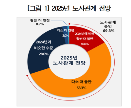 [뉴스락] 국내 기업 10곳 중 7곳이 2025년 노사관계가 올해보다 더 불안해질 것으로 전망했다.