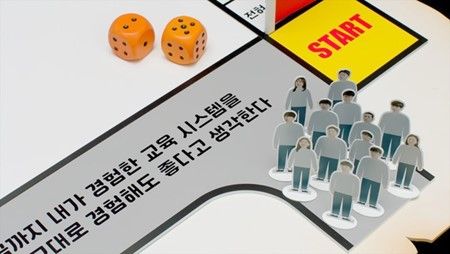 박혜민: 5부 제목은 ‘스포일러’였어요. 입시 경쟁의 상징인 ‘선행학습’과 우리 모두 이 게임(교육격차)의 결말을 알고 있다는 중의적 의미를 담았는데요. 교육 격차와 공정성에 대해서 다양한 배경의 청년들이 함께 모아았어요. 각자 교육격차에 대해 서로 다른 입장을 내다가 유일하게 똑같이 ‘아니다’라고 답한 질문이 있었어요. “내 자녀에게 내가 경험한 교육 시스템을 물려주고 싶은가?” 저출생 문제로 자연스레 이어지는 질문이었는데요. ‘이러다가 우리 모두 죽어!!’라는 메시지를 암시하면서 마무리했어요.