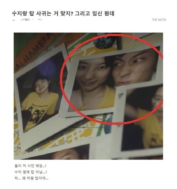 "둘이 사귀는 거 맞지? 임신은 뭔데?"...수지♥탑, 온라인 커뮤니티에서 터져 난리 난 '열애설'