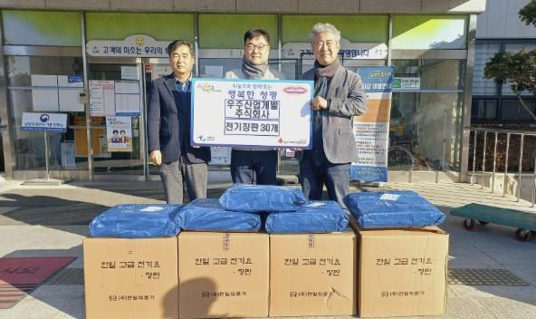 [와이뉴스] 우주산업개발㈜은 최근 가평군 청평면행정복지센터를 방문해 관내 어려운 이웃들을 위해 사용해 달라며 전기장판 30개를 기탁했다.