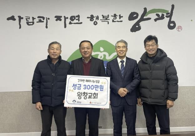 김석만 강하면장은 “연말을 맞아 성금을 기탁해주신 왕창교회에 깊은 감사를 드린다. 기탁해주신 성금은 도움이 필요한 주변의 이웃들에게 잘 전달하여 따뜻한 연말연시를 보낼 수 있도록 최선을 다하겠다.” 전했다.