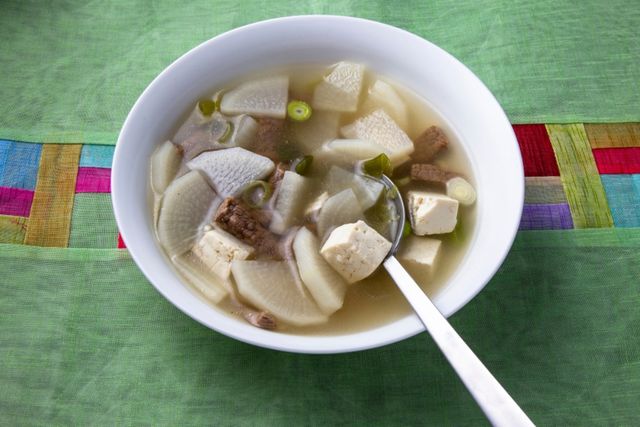 나물류로는 고사리, 도라지, 시금치를 주로 사용하며, 각각 데쳐서 간장, 참기름, 소금으로 무쳐낸다. 탕국은 참기름으로 소고기를 볶아 육수를 내고, 두부와 무를 넣어 맑고 깔끔하게 끓이며, 국간장으로 간을 맞춘다.