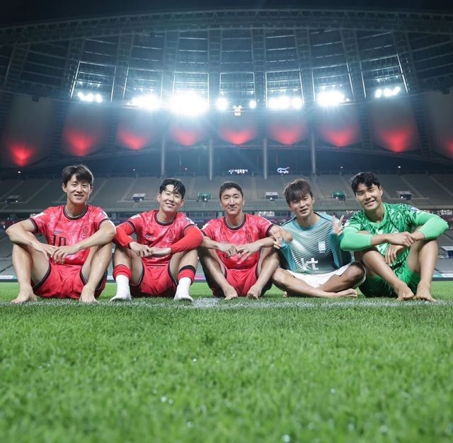 한국 축구대표팀. (왼쪽부터) 이재성, 손흥민, 정우영, 김진수, 송범근. / 송범근 인스타그램